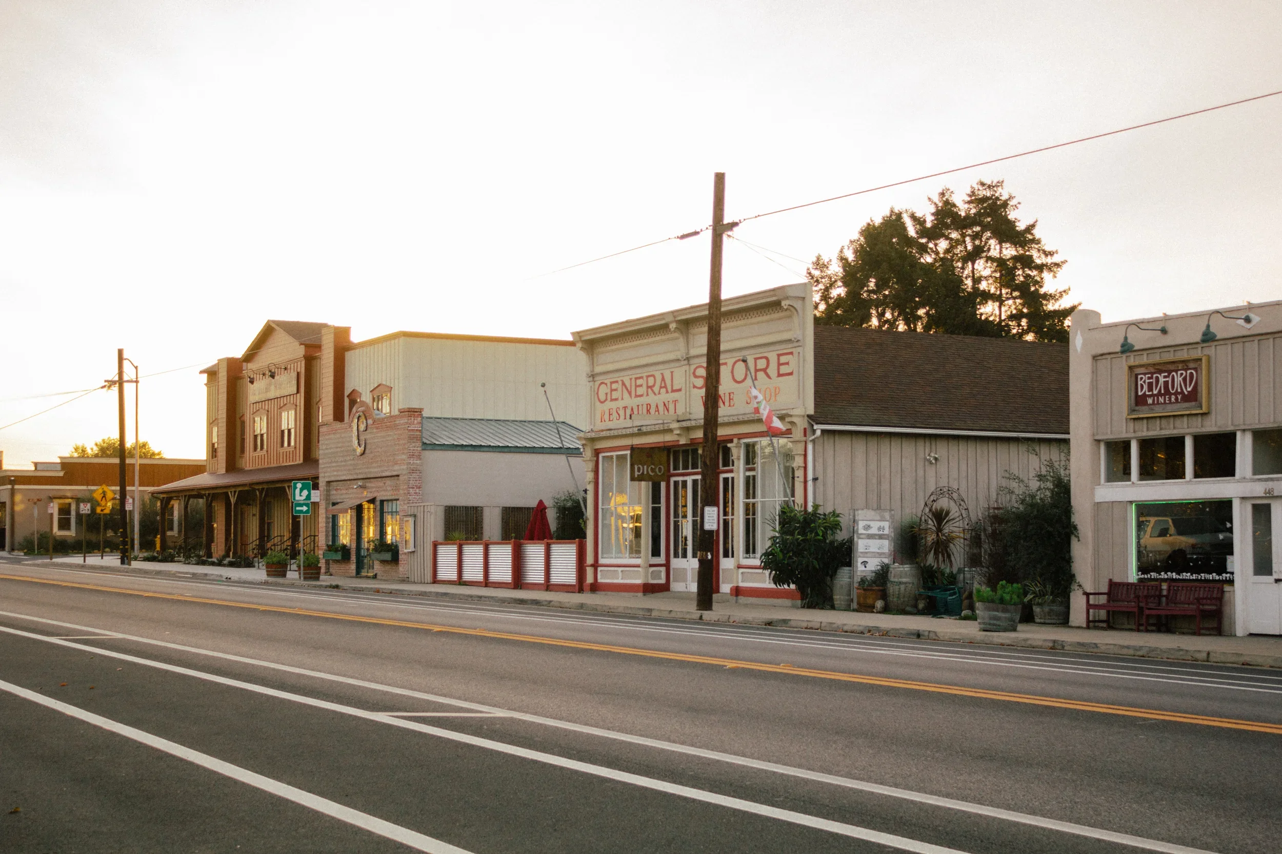 The walkable, charming downtown of Santa Ynez features boutique shops, local wine-tasting rooms, and popular restaurants like SY Kitchen.